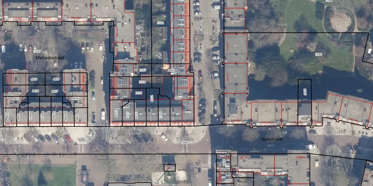 Het perceel waarop het adres ligt is ASD19-W-8904. De afkorting 'ASD19' staat voor kadastrale gemeente Amsterdam. De gemiddelde perceelgrootte in Amsterdam is 1563,05 m². Dit perceel is kleiner: de perceeloppervlakte bedraagt 437 m². Het kleinste perceel in de kadastrale gemeente is 0 m² groot. De grootste perceeloppervlakte is 17,9 ha. Op het perceel zijn 16 adressen aanwezig. De huidige grenzen van het perceel zijn digitaal in de Basisregistratie Kadaster (BRK) geregistreerd op 13-06-2018.