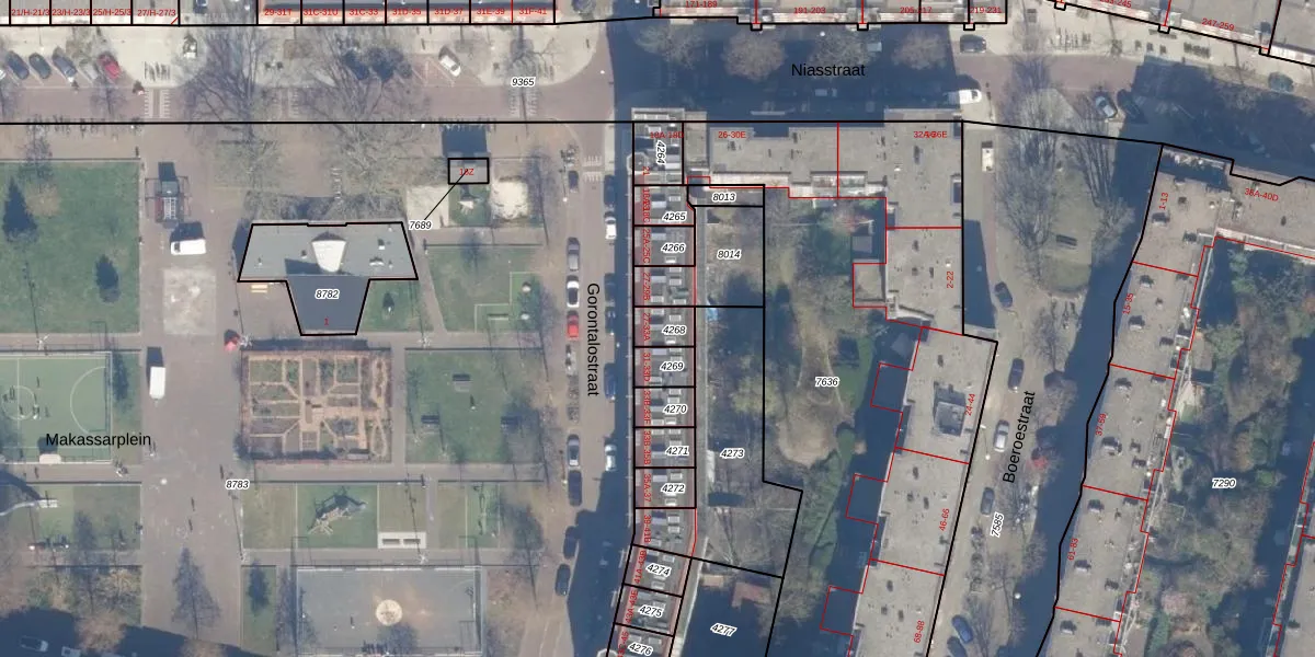 Het perceel waarop Gorontalostraat 29-A staat heeft een oppervlakte van 58 m². Dit is een klein perceel. De perceeloppervlakte wordt geregistreerd door het Kadaster. Gedetailleerde informatie over de maten van dit perceel kunt u vinden in het rapport Kadastrale kaart met maatvoering van Gorontalostraat 29-A.