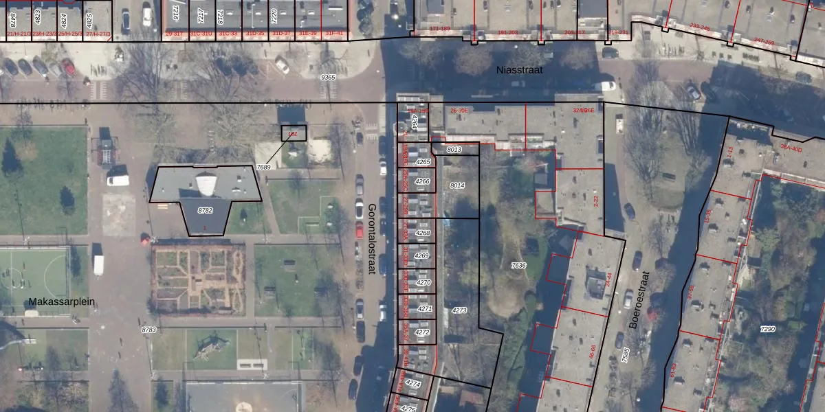 Het perceel waarop Gorontalostraat 29-B staat heeft een oppervlakte van 225 m². Dit is een middelgroot perceel. De perceeloppervlakte wordt geregistreerd door het Kadaster. Gedetailleerde informatie over de maten van dit perceel kunt u vinden in het rapport Kadastrale kaart met maatvoering van Gorontalostraat 29-B.