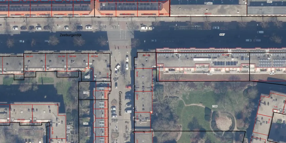 Gorontalostraat 3-G is gelegen op kadastraal perceel ASD19W7284. Deze kadastrale aanduiding is uniek en wordt gebruikt door het Kadaster om eigendomsrechten en andere zakelijke rechten vast te leggen. Het perceel maakt onderdeel uit van de kadastrale gemeente Amsterdam.