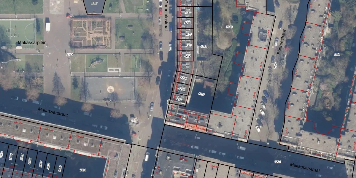 Gorontalostraat 43-A is gelegen op kadastraal perceel ASD19W4275. Deze kadastrale aanduiding is uniek en wordt gebruikt door het Kadaster om eigendomsrechten en andere zakelijke rechten vast te leggen. Het perceel maakt onderdeel uit van de kadastrale gemeente Amsterdam.