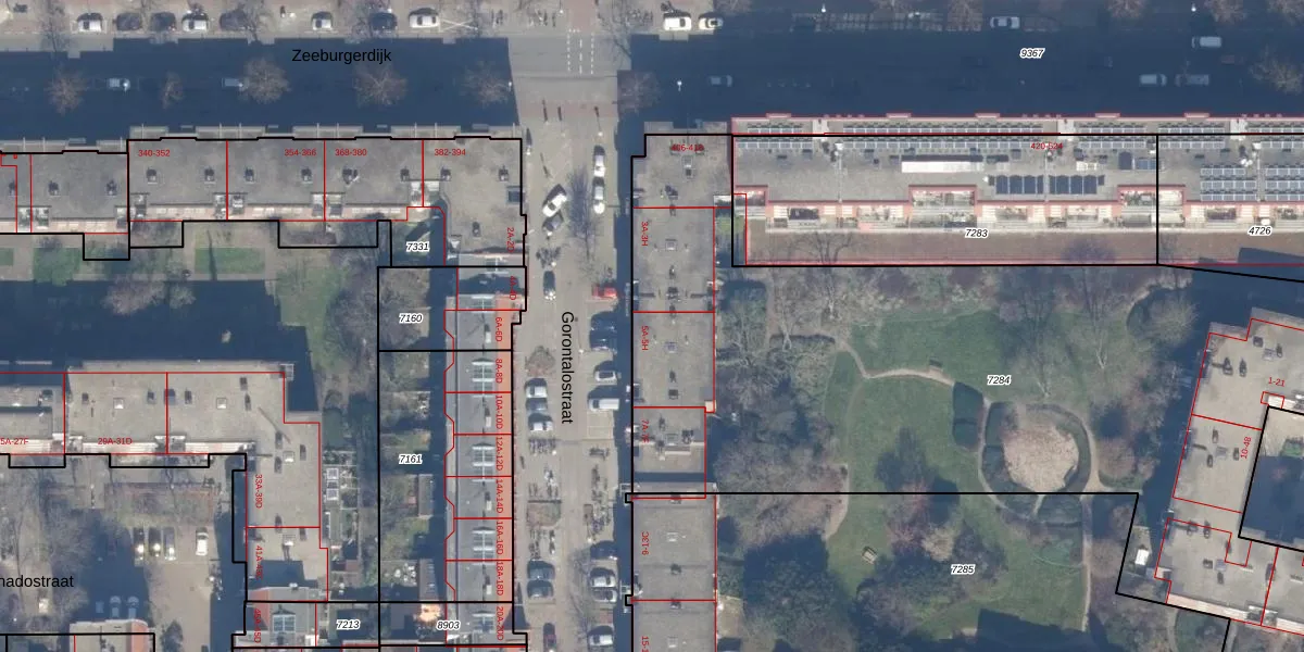 Gorontalostraat 5-D is gelegen op kadastraal perceel ASD19W7284. Deze kadastrale aanduiding is uniek en wordt gebruikt door het Kadaster om eigendomsrechten en andere zakelijke rechten vast te leggen. Het perceel maakt onderdeel uit van de kadastrale gemeente Amsterdam.