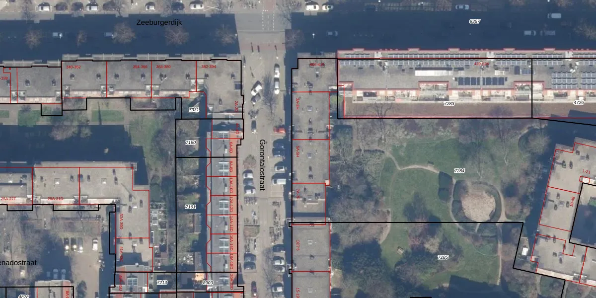 Het perceel waarop Gorontalostraat 5-H staat heeft een oppervlakte van 4978 m². Dit is een zeer groot perceel. De perceeloppervlakte wordt geregistreerd door het Kadaster. Gedetailleerde informatie over de maten van dit perceel kunt u vinden in het rapport Kadastrale kaart met maatvoering van Gorontalostraat 5-H.