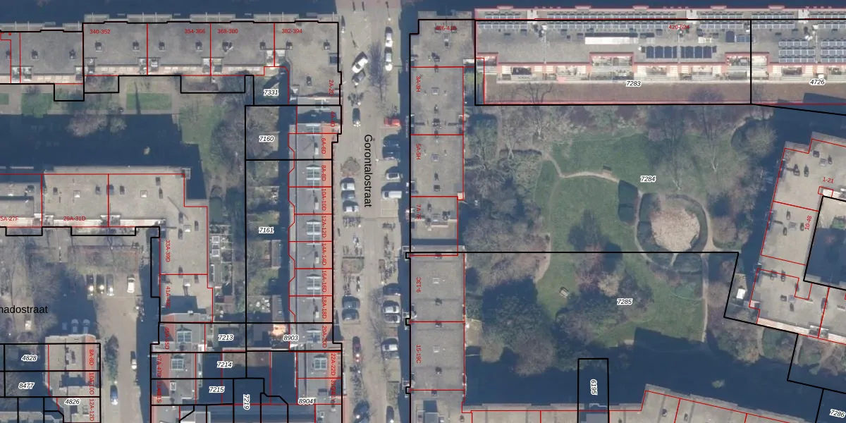 Het perceel waarop Gorontalostraat 7-F staat heeft een oppervlakte van 4978 m². Dit is een zeer groot perceel. De perceeloppervlakte wordt geregistreerd door het Kadaster. Gedetailleerde informatie over de maten van dit perceel kunt u vinden in het rapport Kadastrale kaart met maatvoering van Gorontalostraat 7-F.