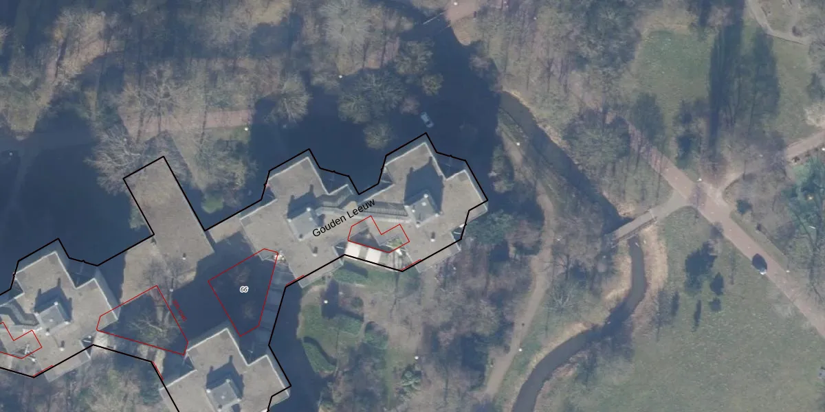 Het perceel waarop Gouden Leeuw 1018 staat heeft een oppervlakte van 6570 m². Dit is een zeer groot perceel. De perceeloppervlakte wordt geregistreerd door het Kadaster. Gedetailleerde informatie over de maten van dit perceel kunt u vinden in het rapport Kadastrale kaart met maatvoering van Gouden Leeuw 1018.