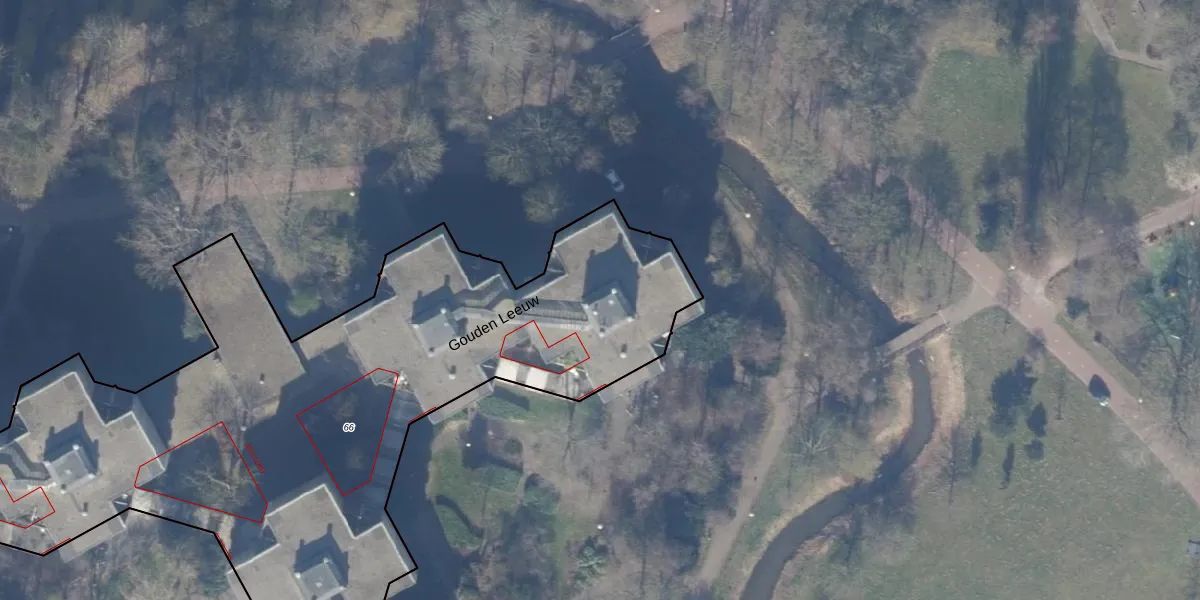 Het perceel waarop Gouden Leeuw 1021 staat heeft een oppervlakte van 6570 m². Dit is een zeer groot perceel. De perceeloppervlakte wordt geregistreerd door het Kadaster. Gedetailleerde informatie over de maten van dit perceel kunt u vinden in het rapport Kadastrale kaart met maatvoering van Gouden Leeuw 1021.