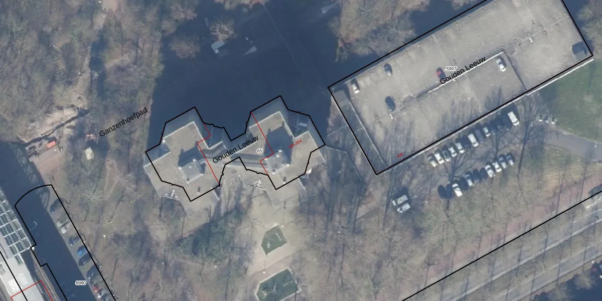 Het perceel waarop Gouden Leeuw 151 staat heeft een oppervlakte van 1116 m². Dit is een zeer groot perceel. De perceeloppervlakte wordt geregistreerd door het Kadaster. Gedetailleerde informatie over de maten van dit perceel kunt u vinden in het rapport Kadastrale kaart met maatvoering van Gouden Leeuw 151.