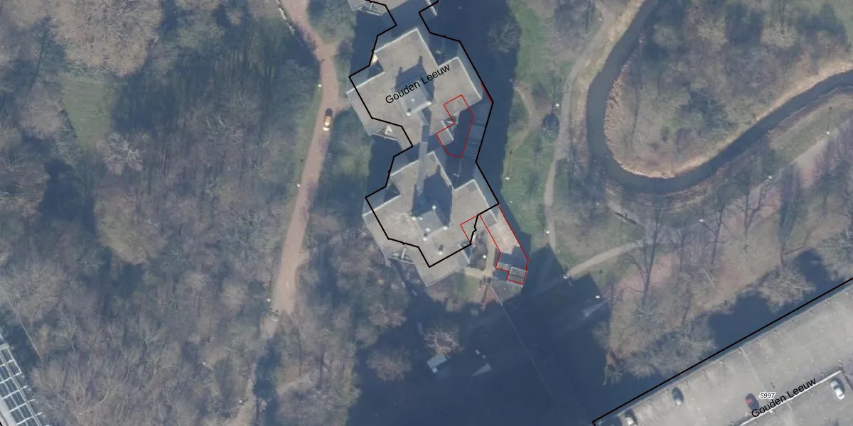 Het perceel waarop Gouden Leeuw 314 staat heeft een oppervlakte van 6570 m². Dit is een zeer groot perceel. De perceeloppervlakte wordt geregistreerd door het Kadaster. Gedetailleerde informatie over de maten van dit perceel kunt u vinden in het rapport Kadastrale kaart met maatvoering van Gouden Leeuw 314.