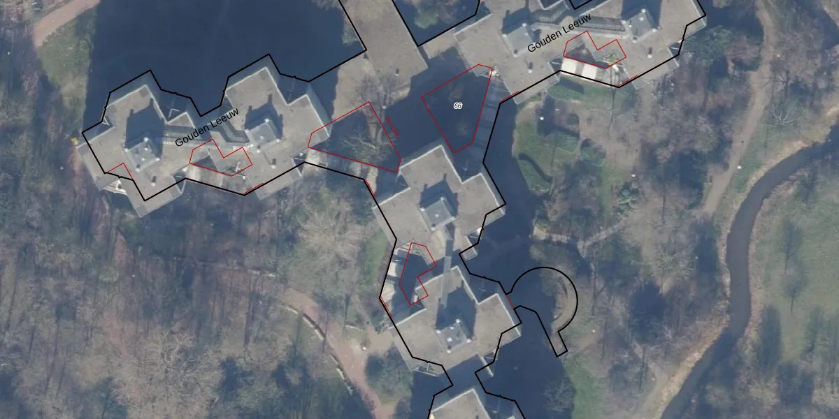 Het perceel waarop Gouden Leeuw 608 staat heeft een oppervlakte van 6570 m². Dit is een zeer groot perceel. De perceeloppervlakte wordt geregistreerd door het Kadaster. Gedetailleerde informatie over de maten van dit perceel kunt u vinden in het rapport Kadastrale kaart met maatvoering van Gouden Leeuw 608.