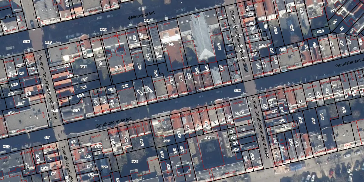 Het perceel waarop Goudsbloemstraat 48-2 staat heeft een oppervlakte van 85 m². Dit is een klein perceel. De perceeloppervlakte wordt geregistreerd door het Kadaster. Gedetailleerde informatie over de maten van dit perceel kunt u vinden in het rapport Kadastrale kaart met maatvoering van Goudsbloemstraat 48-2.