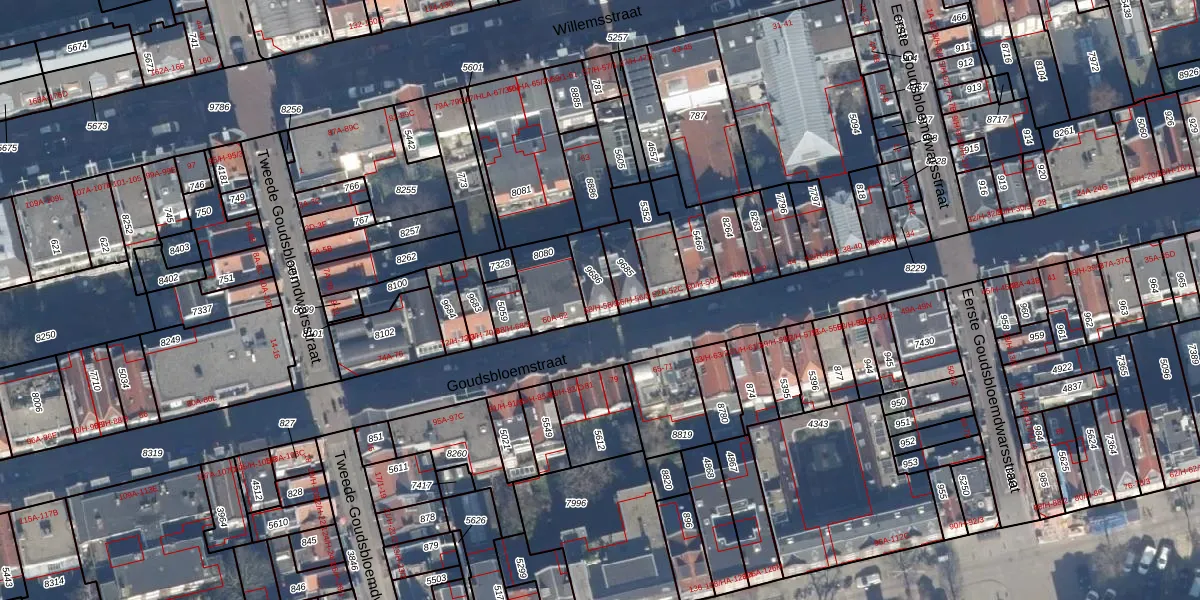 Het perceel waarop Goudsbloemstraat 58-H staat heeft een oppervlakte van 81 m². Dit is een klein perceel. De perceeloppervlakte wordt geregistreerd door het Kadaster. Gedetailleerde informatie over de maten van dit perceel kunt u vinden in het rapport Kadastrale kaart met maatvoering van Goudsbloemstraat 58-H.
