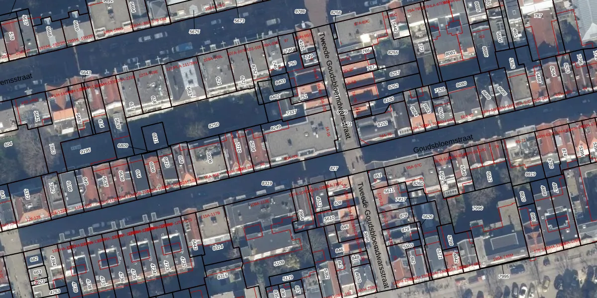Het perceel waarop Goudsbloemstraat 80-L staat heeft een oppervlakte van 353 m². Dit is een groot perceel. De perceeloppervlakte wordt geregistreerd door het Kadaster. Gedetailleerde informatie over de maten van dit perceel kunt u vinden in het rapport Kadastrale kaart met maatvoering van Goudsbloemstraat 80-L.