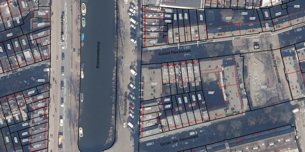 Het adres ligt op het perceel ASD14-R-6197, dat zich in de kadastrale gemeente Amsterdam bevindt. De oppervlakte van het perceel is 375 m². Dat is groter dan gemiddeld in Amsterdam, waar de gemiddelde perceeloppervlakte op 354,38 m² ligt. Het grootste perceel in de kadastrale gemeente is 9,9 ha. Het kleinste perceel heeft een oppervlakte van 0 m². Er zijn 19 adressen aanwezig op het perceel. De huidige grenzen van het perceel zijn digitaal in de Basisregistratie Kadaster (BRK) geregistreerd op 06-10-2006.
