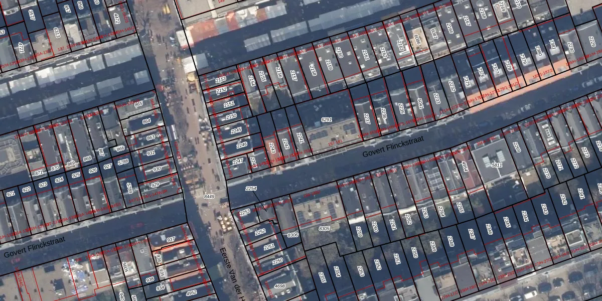 Het perceel waarop Govert Flinckstraat 155-H staat heeft een oppervlakte van 84 m². Dit is een klein perceel. De perceeloppervlakte wordt geregistreerd door het Kadaster. Gedetailleerde informatie over de maten van dit perceel kunt u vinden in het rapport Kadastrale kaart met maatvoering van Govert Flinckstraat 155-H.
