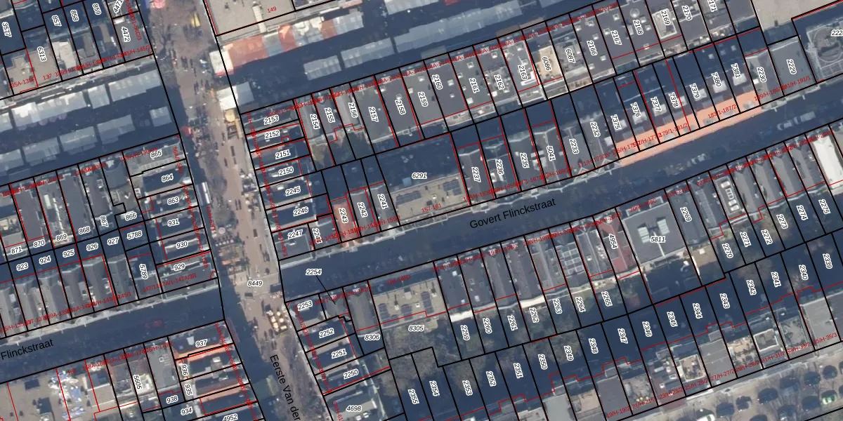 Govert Flinckstraat 157 is gelegen op kadastraal perceel ASD14R6291. Deze kadastrale aanduiding is uniek en wordt gebruikt door het Kadaster om eigendomsrechten en andere zakelijke rechten vast te leggen. Het perceel maakt onderdeel uit van de kadastrale gemeente Amsterdam.