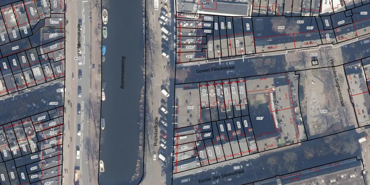Het adres ligt op het perceel ASD14-R-6197, dat zich in de kadastrale gemeente Amsterdam bevindt. De oppervlakte van het perceel is 375 m². Dat is groter dan gemiddeld in Amsterdam, waar de gemiddelde perceeloppervlakte op 354,38 m² ligt. Het grootste perceel in de kadastrale gemeente is 9,9 ha. Het kleinste perceel heeft een oppervlakte van 0 m². Er zijn 19 adressen aanwezig op het perceel. In de Basisregistratie Kadaster (BRK) werden de grenzen van het perceel geregistreerd op 06-10-2006.