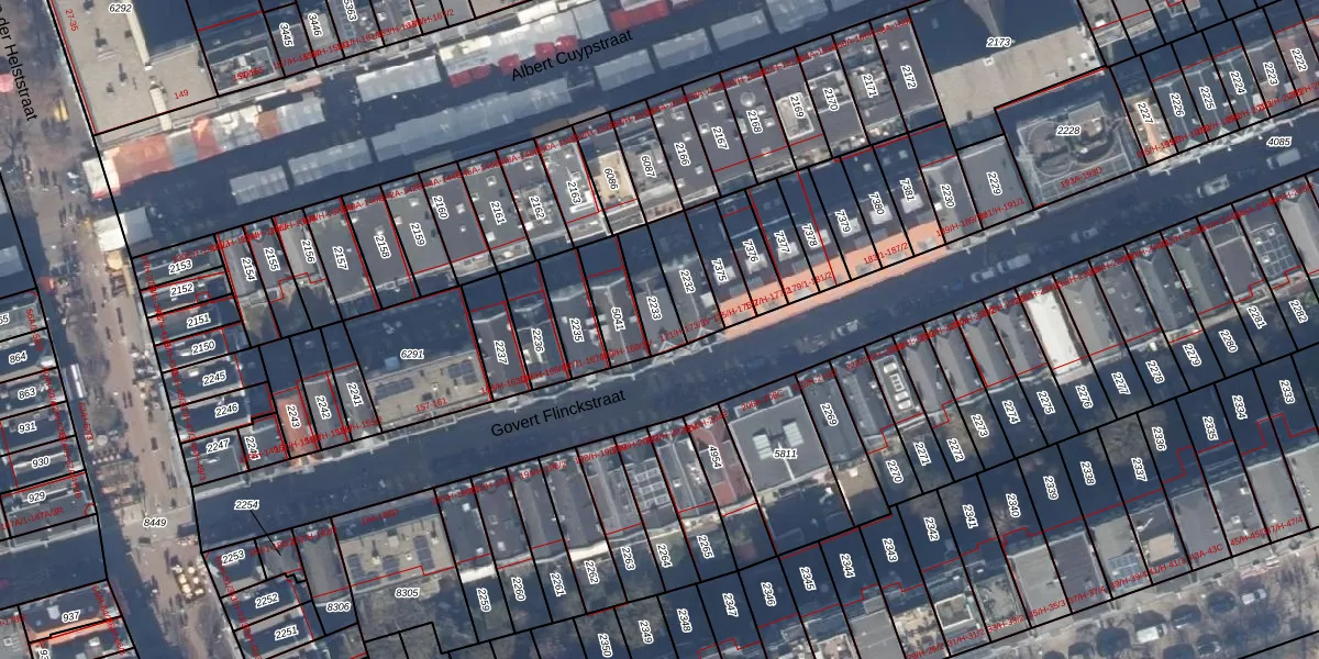 Het perceel waarop Govert Flinckstraat 171-2A staat heeft een oppervlakte van 102 m². Dit is een middelgroot perceel. De perceeloppervlakte wordt geregistreerd door het Kadaster. Gedetailleerde informatie over de maten van dit perceel kunt u vinden in het rapport Kadastrale kaart met maatvoering van Govert Flinckstraat 171-2A.