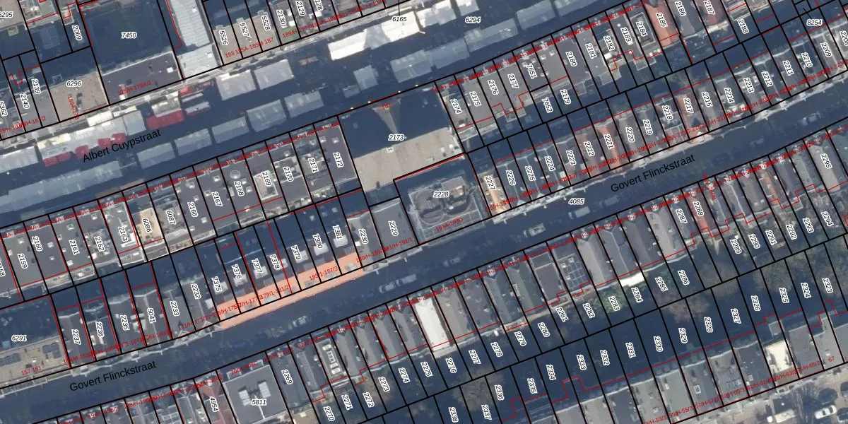 Het perceel waarop Govert Flinckstraat 193-B staat heeft een oppervlakte van 303 m². Dit is een groot perceel. De perceeloppervlakte wordt geregistreerd door het Kadaster. Gedetailleerde informatie over de maten van dit perceel kunt u vinden in het rapport Kadastrale kaart met maatvoering van Govert Flinckstraat 193-B.