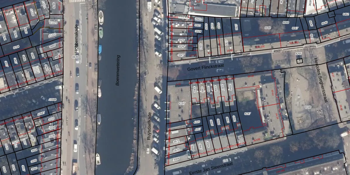 Het adres ligt op het perceel ASD14-R-6197, dat zich in de kadastrale gemeente Amsterdam bevindt. De oppervlakte van het perceel is 375 m². Dat is groter dan gemiddeld in Amsterdam, waar de gemiddelde perceeloppervlakte op 354,38 m² ligt. Het grootste perceel in de kadastrale gemeente is 9,9 ha. Het kleinste perceel heeft een oppervlakte van 0 m². Er zijn 19 adressen aanwezig op het perceel. De laatste wijziging in het de Basisregistratie Kadaster (BRK) was op 06-10-2006.
