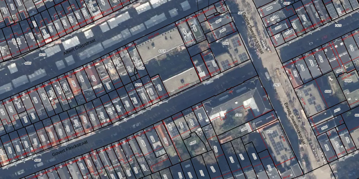 Govert Flinckstraat 235-B is gelegen op kadastraal perceel ASD14R6314. Deze kadastrale aanduiding is uniek en wordt gebruikt door het Kadaster om eigendomsrechten en andere zakelijke rechten vast te leggen. Het perceel maakt onderdeel uit van de kadastrale gemeente Amsterdam.