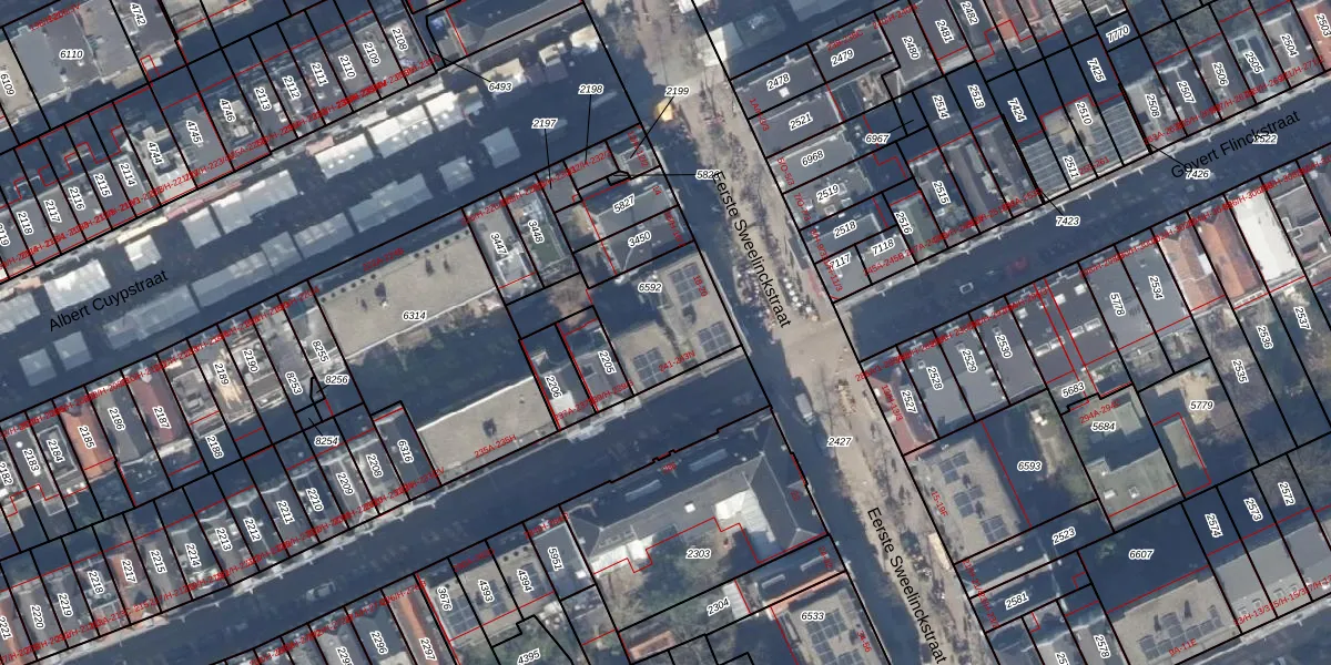 Het perceel waarop het adres ligt is ASD14-R-6592. De afkorting 'ASD14' staat voor kadastrale gemeente Amsterdam. De gemiddelde perceelgrootte in Amsterdam is 354,38 m². Dit perceel is kleiner: de perceeloppervlakte bedraagt 346 m². De grootste perceeloppervlakte in de kadastrale gemeente is 9,9 ha. De kleinste oppervlakte bedraagt 0 m². Er zijn 15 adressen aanwezig op het perceel. De laatste wijziging in het de Basisregistratie Kadaster (BRK) was op 30-10-2006.