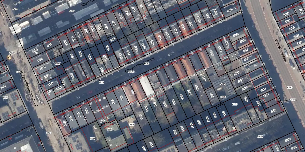 Het perceel waarop het adres ligt is ASD14-R-2538. De afkorting 'ASD14' staat voor kadastrale gemeente Amsterdam. De gemiddelde perceelgrootte in Amsterdam is 354,38 m². Dit perceel is kleiner: de perceeloppervlakte bedraagt 240 m². Het kleinste perceel in de kadastrale gemeente is 0 m² groot. De grootste perceeloppervlakte is 9,9 ha. Er zijn 7 adressen aanwezig op het perceel. In de Basisregistratie Kadaster (BRK) werden de grenzen van het perceel geregistreerd op 30-10-2006.
