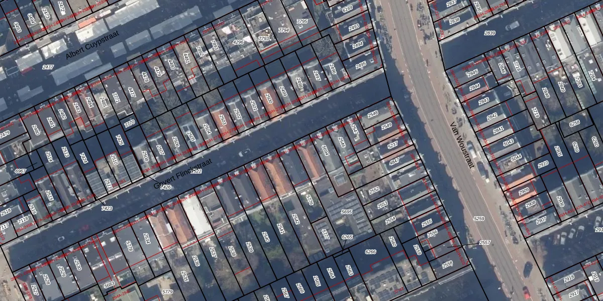 Het adres is gelegen op perceel 5695 in de sectie R en de kadastrale gemeente Amsterdam. De kadastrale aanduiding is aldus ASD14-R-5695. De gemiddelde perceelgrootte in Amsterdam is 354,38 m². Dit perceel is kleiner: de perceeloppervlakte bedraagt 342 m². Het grootste perceel in de kadastrale gemeente is 9,9 ha. Het kleinste perceel heeft een oppervlakte van 0 m². Op het perceel zijn 4 adressen aanwezig. De huidige grenzen van het perceel zijn digitaal in de Basisregistratie Kadaster (BRK) geregistreerd op 30-10-2006.