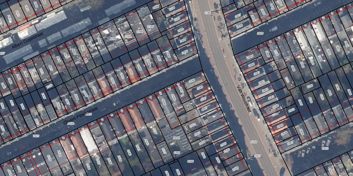Het adres ligt op het perceel ASD14-R-2547, dat zich in de kadastrale gemeente Amsterdam bevindt. De gemiddelde perceelgrootte in Amsterdam is 354,38 m². Dit perceel is kleiner: de perceeloppervlakte bedraagt 69 m². Het grootste perceel in de kadastrale gemeente is 9,9 ha. Het kleinste perceel heeft een oppervlakte van 0 m². Op het perceel liggen in totaal 6 adressen. De huidige grenzen van het perceel zijn digitaal in de Basisregistratie Kadaster (BRK) geregistreerd op 30-10-2006.