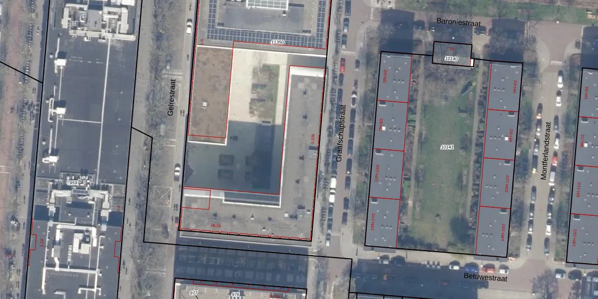 Het perceel waarop Graafschapstraat 48 staat heeft een oppervlakte van 4314 m². Dit is een zeer groot perceel. De perceeloppervlakte wordt geregistreerd door het Kadaster. Gedetailleerde informatie over de maten van dit perceel kunt u vinden in het rapport Kadastrale kaart met maatvoering van Graafschapstraat 48.