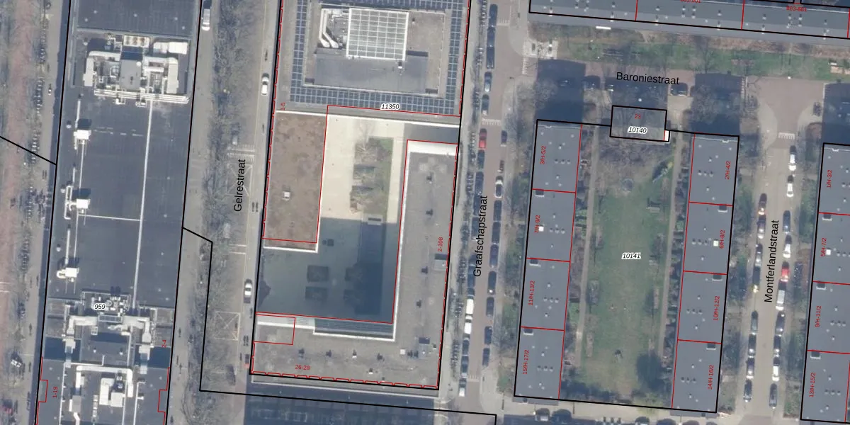 Het adres is gelegen op perceel 11350 in de sectie V en de kadastrale gemeente Amsterdam. De kadastrale aanduiding is aldus ASD18-V-11350. Het perceel is met 4314 m² relatief groot. Het gemiddelde ligt in de kadastrale gemeente Amsterdam op 558,8 m². Het grootste perceel in de kadastrale gemeente is 12,5 ha. Het kleinste perceel heeft een oppervlakte van 0 m². Er zijn 60 adressen aanwezig op het perceel. De laatste wijziging in het de Basisregistratie Kadaster (BRK) was op 09-03-2010.