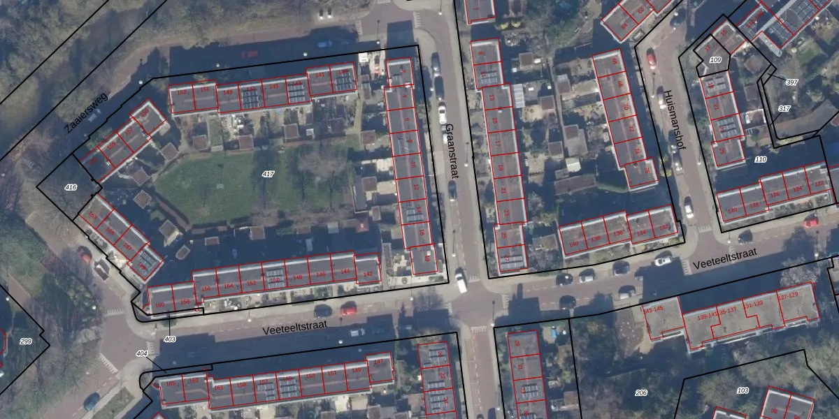 Het perceel waarop Graanstraat 14 staat heeft een oppervlakte van 4490 m². Dit is een zeer groot perceel. De perceeloppervlakte wordt geregistreerd door het Kadaster. Gedetailleerde informatie over de maten van dit perceel kunt u vinden in het rapport Kadastrale kaart met maatvoering van Graanstraat 14.
