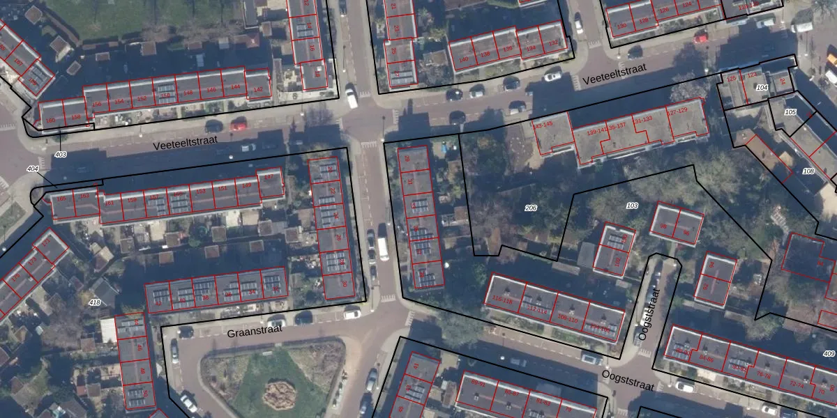 Het perceel waarop Graanstraat 33 staat heeft een oppervlakte van 3365 m². Dit is een zeer groot perceel. De perceeloppervlakte wordt geregistreerd door het Kadaster. Gedetailleerde informatie over de maten van dit perceel kunt u vinden in het rapport Kadastrale kaart met maatvoering van Graanstraat 33.