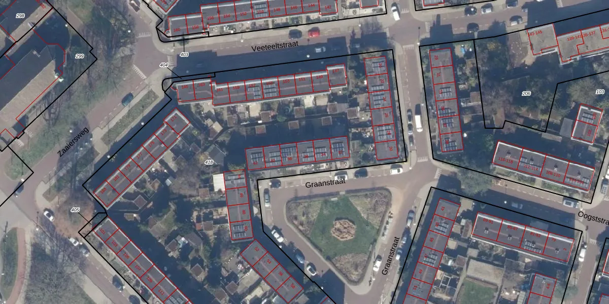 Het perceel waarop Graanstraat 36 staat heeft een oppervlakte van 6585 m². Dit is een zeer groot perceel. De perceeloppervlakte wordt geregistreerd door het Kadaster. Gedetailleerde informatie over de maten van dit perceel kunt u vinden in het rapport Kadastrale kaart met maatvoering van Graanstraat 36.