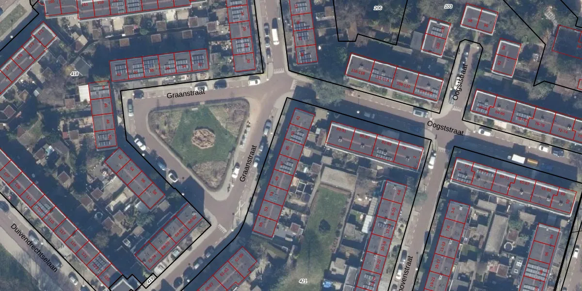 Het perceel waarop Graanstraat 45 staat heeft een oppervlakte van 6090 m². Dit is een zeer groot perceel. De perceeloppervlakte wordt geregistreerd door het Kadaster. Gedetailleerde informatie over de maten van dit perceel kunt u vinden in het rapport Kadastrale kaart met maatvoering van Graanstraat 45.