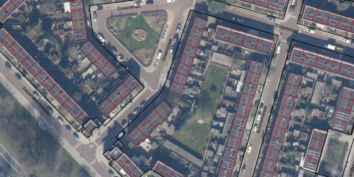 Het perceel waarop Graanstraat 55 staat heeft een oppervlakte van 6090 m². Dit is een zeer groot perceel. De perceeloppervlakte wordt geregistreerd door het Kadaster. Gedetailleerde informatie over de maten van dit perceel kunt u vinden in het rapport Kadastrale kaart met maatvoering van Graanstraat 55.