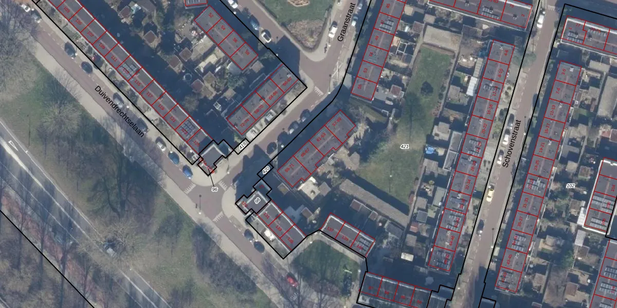 Het perceel waarop Graanstraat 67 staat heeft een oppervlakte van 6090 m². Dit is een zeer groot perceel. De perceeloppervlakte wordt geregistreerd door het Kadaster. Gedetailleerde informatie over de maten van dit perceel kunt u vinden in het rapport Kadastrale kaart met maatvoering van Graanstraat 67.