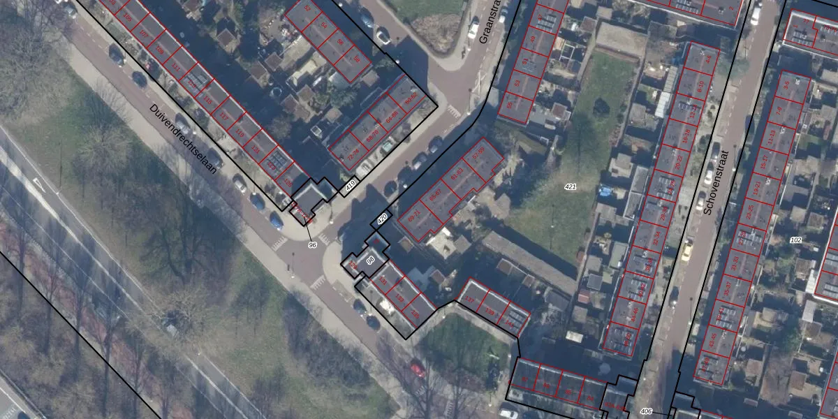 Het perceel waarop Graanstraat 69 staat heeft een oppervlakte van 6090 m². Dit is een zeer groot perceel. De perceeloppervlakte wordt geregistreerd door het Kadaster. Gedetailleerde informatie over de maten van dit perceel kunt u vinden in het rapport Kadastrale kaart met maatvoering van Graanstraat 69.