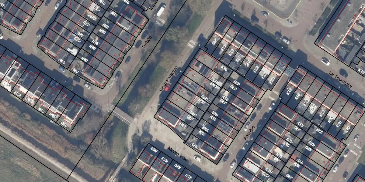 Gran Paradiso 9 is gelegen op kadastraal perceel STN02G2515. Deze kadastrale aanduiding is uniek en wordt gebruikt door het Kadaster om eigendomsrechten en andere zakelijke rechten vast te leggen. Het perceel maakt onderdeel uit van de kadastrale gemeente Sloten Noord-Holland.