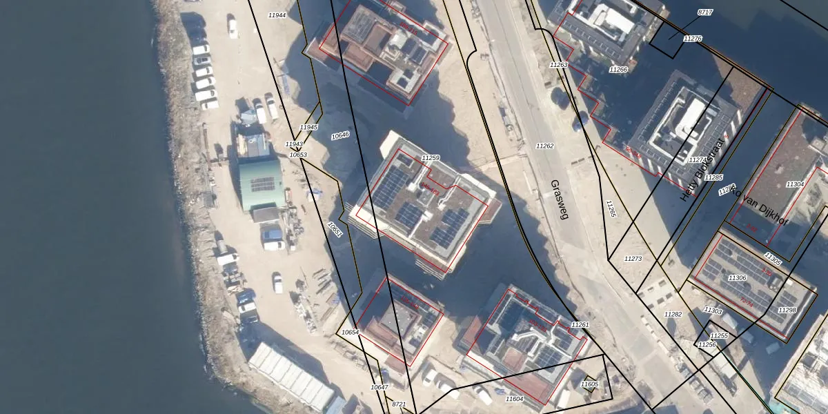Het perceel waarop Grasweg 153 staat heeft een oppervlakte van 3891 m². Dit is een zeer groot perceel. De perceeloppervlakte wordt geregistreerd door het Kadaster. Gedetailleerde informatie over de maten van dit perceel kunt u vinden in het rapport Kadastrale kaart met maatvoering van Grasweg 153.