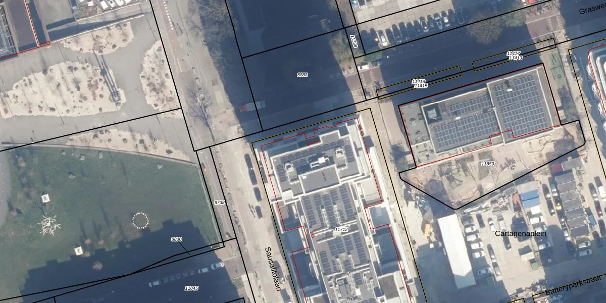 Het adres is gelegen op perceel 11712 in de sectie K en de kadastrale gemeente Amsterdam. De kadastrale aanduiding is aldus ASD07-K-11712. De gemiddelde perceelgrootte in Amsterdam is 3005,21 m². Dit perceel is kleiner: de perceeloppervlakte bedraagt 2907 m². De grootste perceeloppervlakte in de kadastrale gemeente is 56,2 ha. De kleinste oppervlakte bedraagt 0 m². Op het perceel zijn 151 adressen aanwezig. De huidige grenzen van het perceel zijn digitaal in de Basisregistratie Kadaster (BRK) geregistreerd op 13-10-2022.