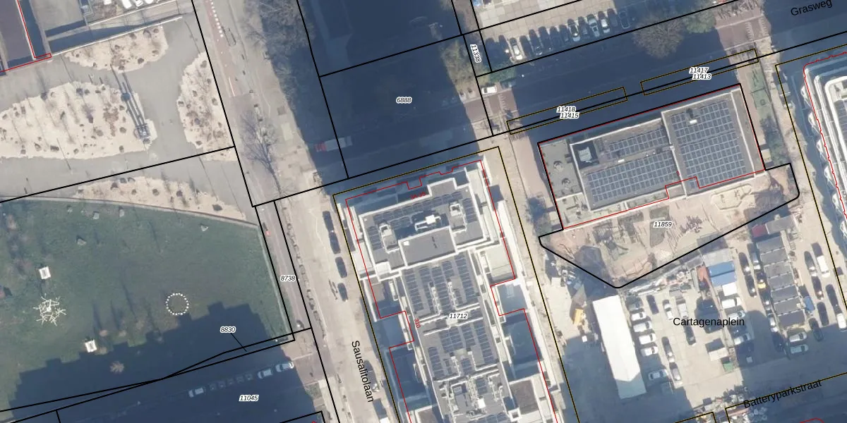 Het adres is gelegen op perceel 11712 in de sectie K en de kadastrale gemeente Amsterdam. De kadastrale aanduiding is aldus ASD07-K-11712. De gemiddelde perceelgrootte in Amsterdam is 3005,21 m². Dit perceel is kleiner: de perceeloppervlakte bedraagt 2907 m². De grootste perceeloppervlakte in de kadastrale gemeente is 56,2 ha. De kleinste oppervlakte bedraagt 0 m². Op het perceel liggen in totaal 151 adressen. In de Basisregistratie Kadaster (BRK) werden de grenzen van het perceel geregistreerd op 13-10-2022.