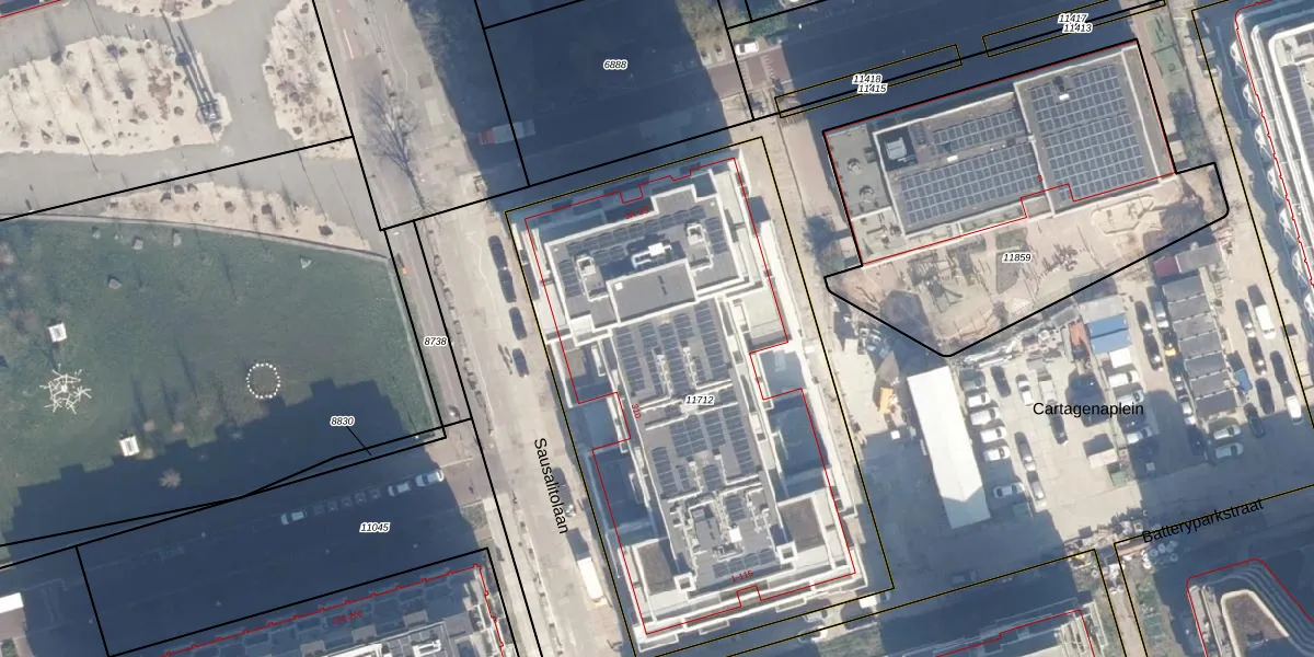 Het adres is gelegen op perceel 11712 in de sectie K en de kadastrale gemeente Amsterdam. De kadastrale aanduiding is aldus ASD07-K-11712. De gemiddelde perceelgrootte in Amsterdam is 3009,24 m². Dit perceel is kleiner: de perceeloppervlakte bedraagt 2907 m². Het grootste perceel in de kadastrale gemeente is 56,2 ha. Het kleinste perceel heeft een oppervlakte van 0 m². Op het perceel liggen in totaal 151 adressen. In de Basisregistratie Kadaster (BRK) werden de grenzen van het perceel geregistreerd op 13-10-2022.