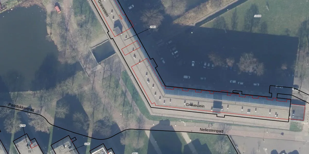 Het perceel waarop Gravestein 19 staat heeft een oppervlakte van 4300 m². Dit is een zeer groot perceel. De perceeloppervlakte wordt geregistreerd door het Kadaster. Gedetailleerde informatie over de maten van dit perceel kunt u vinden in het rapport Kadastrale kaart met maatvoering van Gravestein 19.