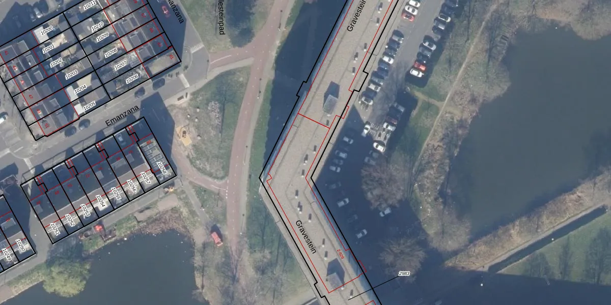 Het perceel waarop Gravestein 33 staat heeft een oppervlakte van 4300 m². Dit is een zeer groot perceel. De perceeloppervlakte wordt geregistreerd door het Kadaster. Gedetailleerde informatie over de maten van dit perceel kunt u vinden in het rapport Kadastrale kaart met maatvoering van Gravestein 33.