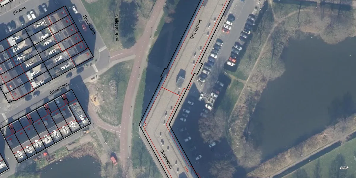 Het perceel waarop Gravestein 35 staat heeft een oppervlakte van 4300 m². Dit is een zeer groot perceel. De perceeloppervlakte wordt geregistreerd door het Kadaster. Gedetailleerde informatie over de maten van dit perceel kunt u vinden in het rapport Kadastrale kaart met maatvoering van Gravestein 35.