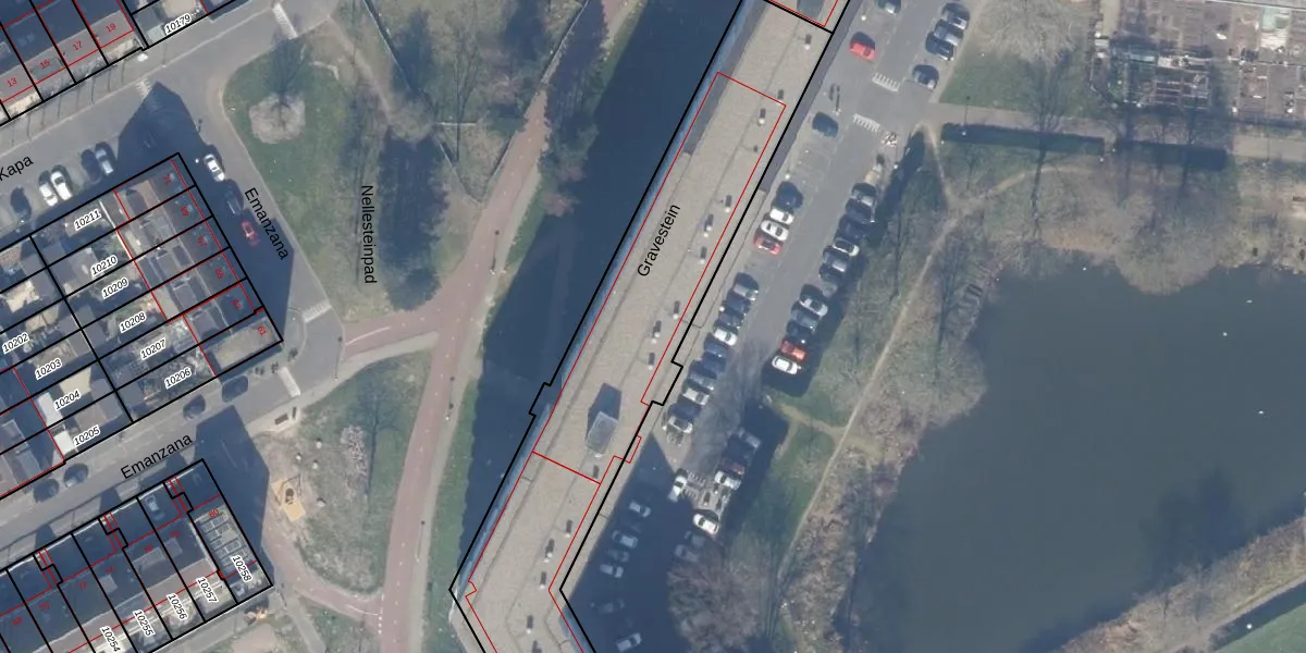 Het perceel waarop Gravestein 39 staat heeft een oppervlakte van 4300 m². Dit is een zeer groot perceel. De perceeloppervlakte wordt geregistreerd door het Kadaster. Gedetailleerde informatie over de maten van dit perceel kunt u vinden in het rapport Kadastrale kaart met maatvoering van Gravestein 39.