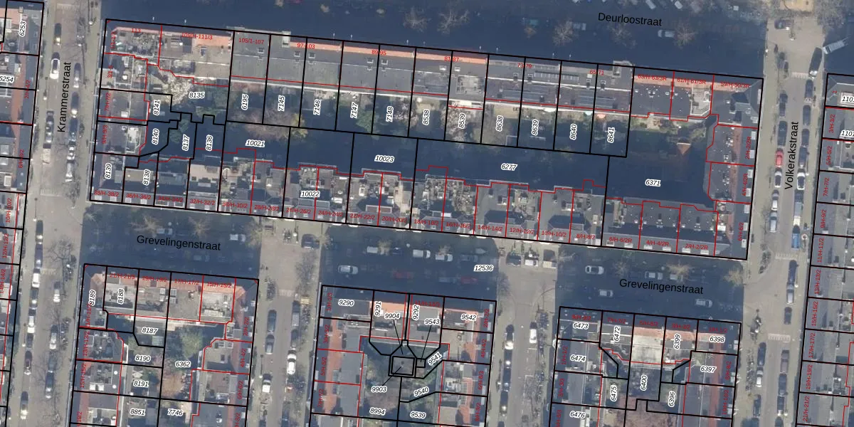 Het adres is gelegen op perceel 6277 in de sectie V en de kadastrale gemeente Amsterdam. De kadastrale aanduiding is aldus ASD18-V-6277. De oppervlakte van het perceel is 956 m². Dat is groter dan gemiddeld in Amsterdam, waar de gemiddelde perceeloppervlakte op 558,8 m² ligt. Het grootste perceel in de kadastrale gemeente is 12,5 ha. Het kleinste perceel heeft een oppervlakte van 0 m². Er zijn 18 adressen aanwezig op het perceel. In de Basisregistratie Kadaster (BRK) werden de grenzen van het perceel geregistreerd op 14-12-2006.