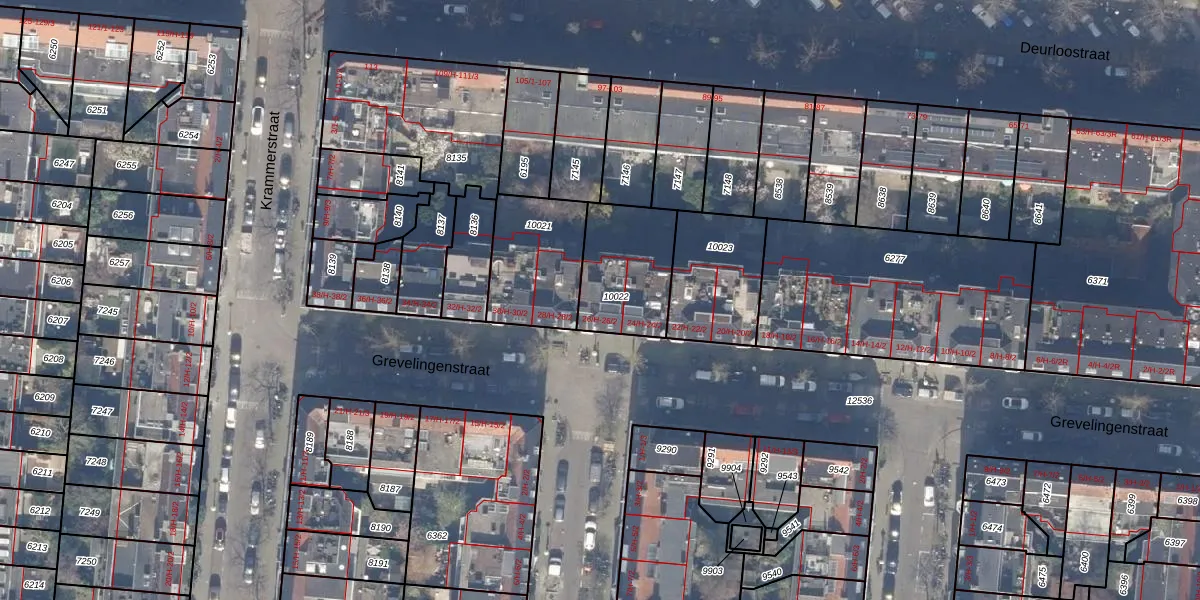 Het adres is gelegen op perceel 10022 in de sectie V en de kadastrale gemeente Amsterdam. De kadastrale aanduiding is aldus ASD18-V-10022. Het perceel is 318 m² groot. Dat is kleiner dan de gemiddelde perceeloppervlakte in Amsterdam, dat op 558,8 m² ligt. Het grootste perceel in de kadastrale gemeente is 12,5 ha. Het kleinste perceel heeft een oppervlakte van 0 m². Op het perceel liggen in totaal 6 adressen. De huidige grenzen van het perceel zijn digitaal in de Basisregistratie Kadaster (BRK) geregistreerd op 17-10-2006.