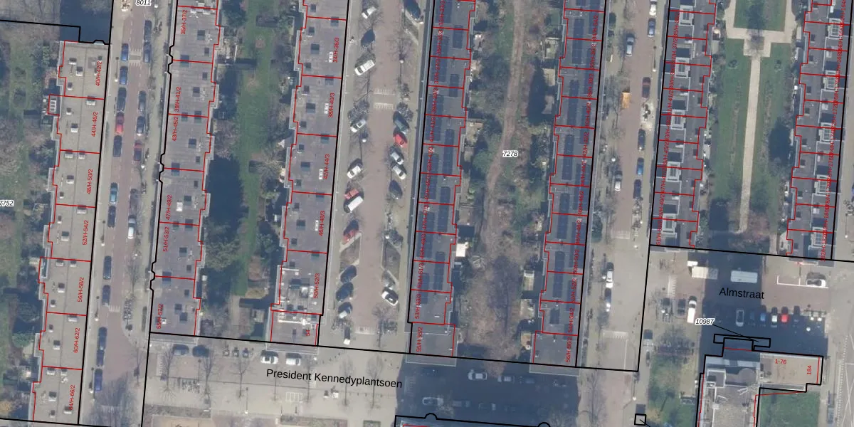 Het adres is gelegen op perceel 7278 in de sectie V en de kadastrale gemeente Amsterdam. De kadastrale aanduiding is aldus ASD18-V-7278. De gemiddelde perceeloppervlakte in de kadastrale gemeente Amsterdam is 559,23 m². Dit perceel is met zijn 4153 m² dus groter dan gemiddeld. Het grootste perceel in de kadastrale gemeente is 12,5 ha. Het kleinste perceel heeft een oppervlakte van 0 m². Op het perceel liggen in totaal 106 adressen. De huidige grenzen van het perceel zijn digitaal in de Basisregistratie Kadaster (BRK) geregistreerd op 09-03-2010.