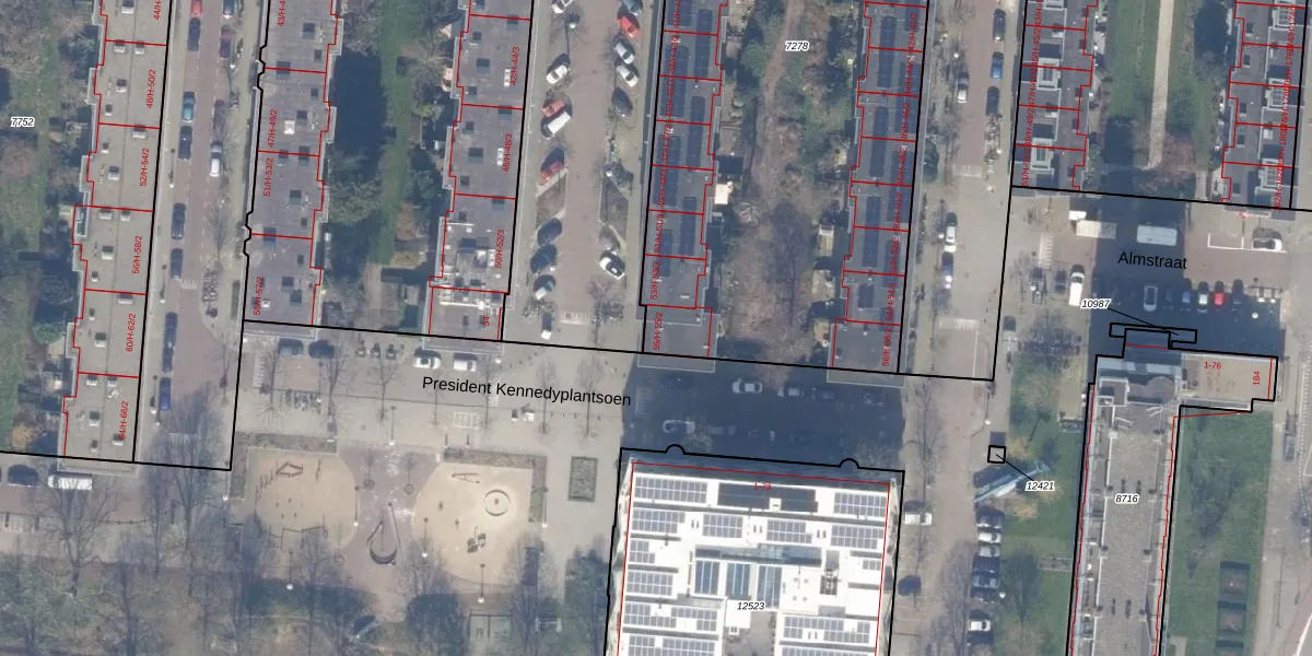 Het adres is gelegen op perceel 7278 in de sectie V en de kadastrale gemeente Amsterdam. De kadastrale aanduiding is aldus ASD18-V-7278. De gemiddelde perceeloppervlakte in de kadastrale gemeente Amsterdam is 559,23 m². Dit perceel is met zijn 4153 m² dus groter dan gemiddeld. Het grootste perceel in de kadastrale gemeente is 12,5 ha. Het kleinste perceel heeft een oppervlakte van 0 m². Op het perceel liggen in totaal 106 adressen. De huidige grenzen van het perceel zijn digitaal in de Basisregistratie Kadaster (BRK) geregistreerd op 09-03-2010.